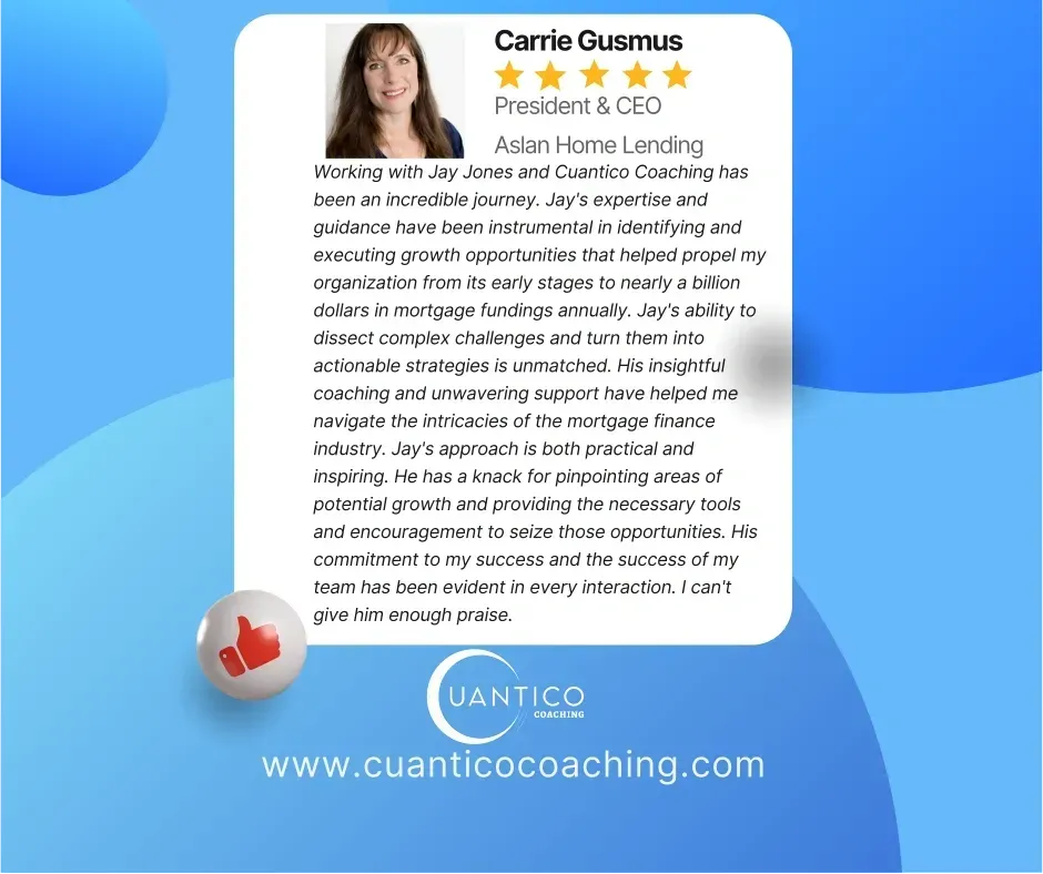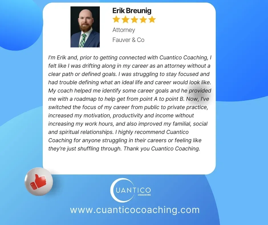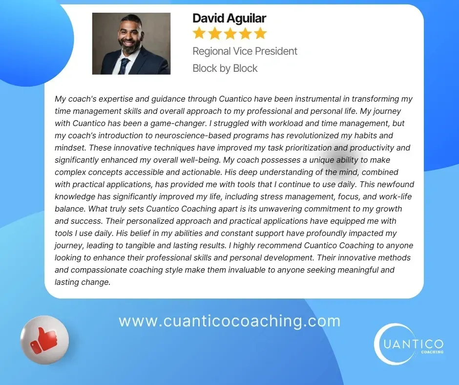 Your success is our business. We believe in making your dreams and goals a reality, and we know just how to do that. We're prepared to help you at any level, our professional coaches will help you to develop successful new habits to make the most of every opportunity. Whether you are an C-Suite executive, business manager or someone working in sales, Cuantico Transformational Coaching is for you.
